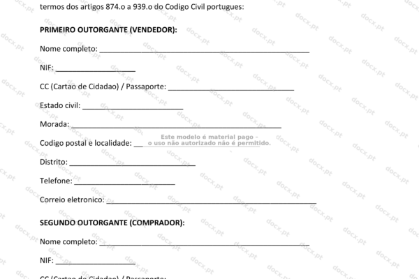 O modelo inclui campos editaveis e caixas de selecao que podes preencher no Microsoft Word, Google Docs ou LibreOffice. Preenche os dados do imovel e das partes, define o prazo e a renda e seleciona os anexos aplicaveis.